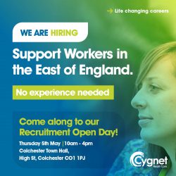 We are looking for full time Support Workers in the Colchester area with a passion for delivering outstanding care. Join us at our free open day on Tuesday 18th October – meet the team, ask questions and find out more about this amazing opportunity.