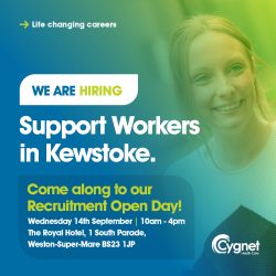 We are looking for full time Support Workers in the Weston area with a passion for delivering outstanding care. Join us at our free open day on Wednesday 14th September – meet the team, ask questions and find out more about this amazing opportunity.