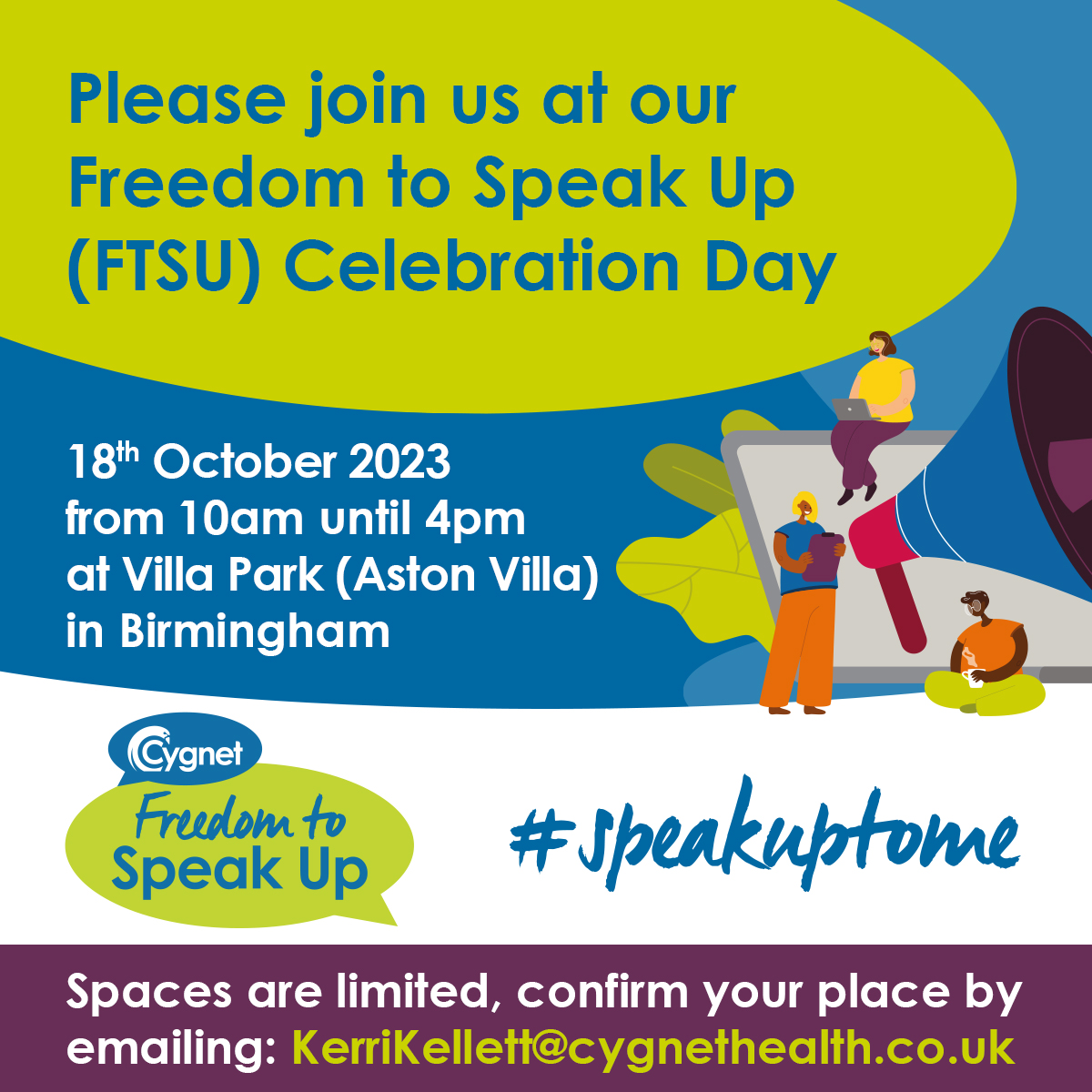 We look forward to seeing you at this event and having you join us to celebrate the journey of success with Freedom to Speak Up at Cygnet.