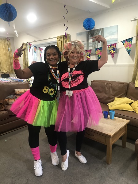 Hansa Lodge staff wanted to cheer up everyone after being in lockdown for so long, so decided to have a party. Resident’s decided on an 80s theme to the party. Staff and residents picked their outfits for the day. There was an 80s karaoke which everyone loved (a bit too much). Tracy Lambert, Support Worker, cooked a big buffet of food which also had an 80s theme, and they carried the theme on through the house with 80s decorations. The party lifted everyone’s spirits back up after being so long not being able to go out.
