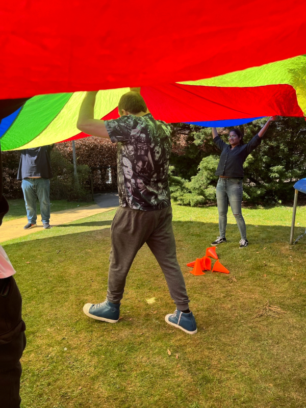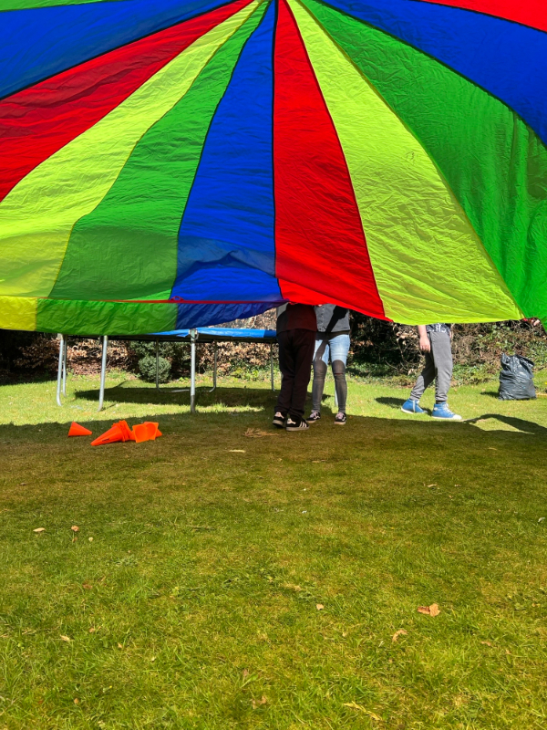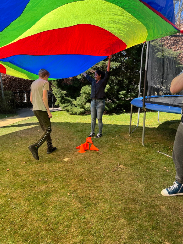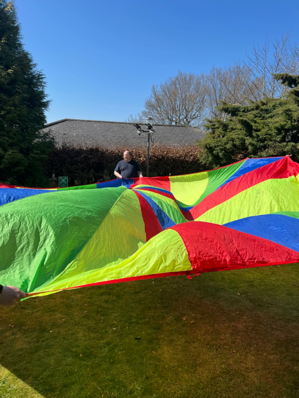The session offers exercise, social interaction and deep pressure therapy. Each individual has their own goal to achieve whilst joining in the fun. In the first week, they used a parachute with staff joining in, creating a warm sense of teamwork.