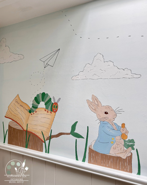 Created by local artist Alexandra Lea Elstone, she used a carefully considered muted colour palette throughout the mural to create a soothing atmosphere whilst reducing potential overstimulation. The subtle colours allow the familiar characters to provide comfort and joy without overwhelming the living space.