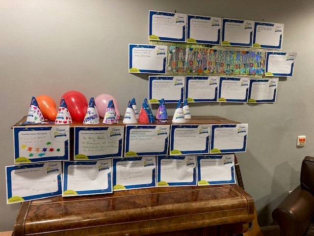 The residents and staff at Ranaich House love a party and they recently held one to celebrate Cygnet’s 35th birthday. The residents took part in the decorating and making of the bunting, hats, and glasses for the photo booth. Everyone shared their favourites memories from Cygnet and made a wall display from them.