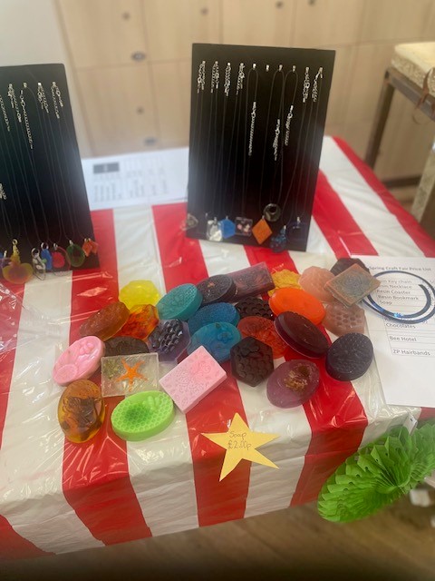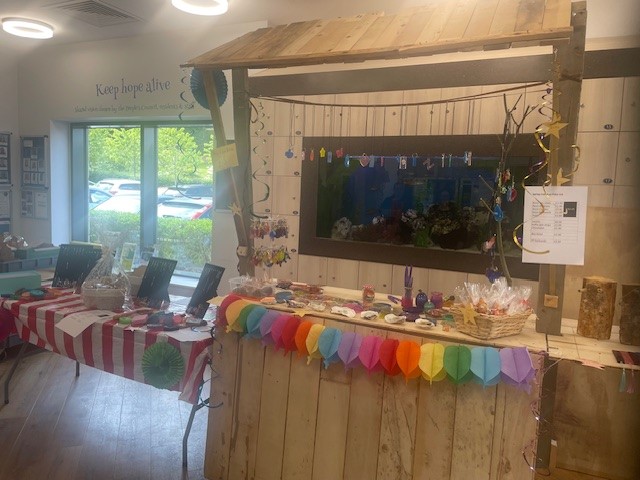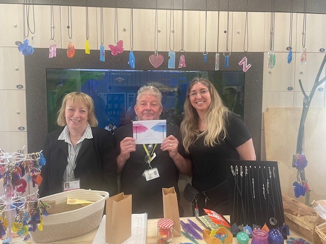 Patients participating in the hospital’s Art and Wellbeing programme, guided by colleagues Kes and Jacqui, created a selection of handcrafted items available for purchase, bringing together patients, staff and carers.