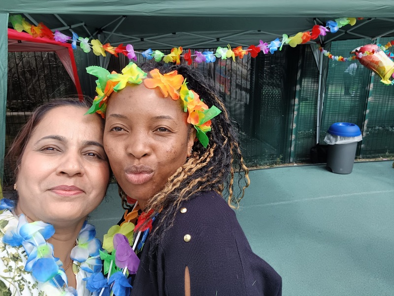 This year staff, service users, carers, and guests all enjoyed a Hawaiian-themed celebration complete with Hawaiian food, an inflatable Tiki Bar, candy floss, slushies, deck chairs, face painting, and music from DJ Lance.