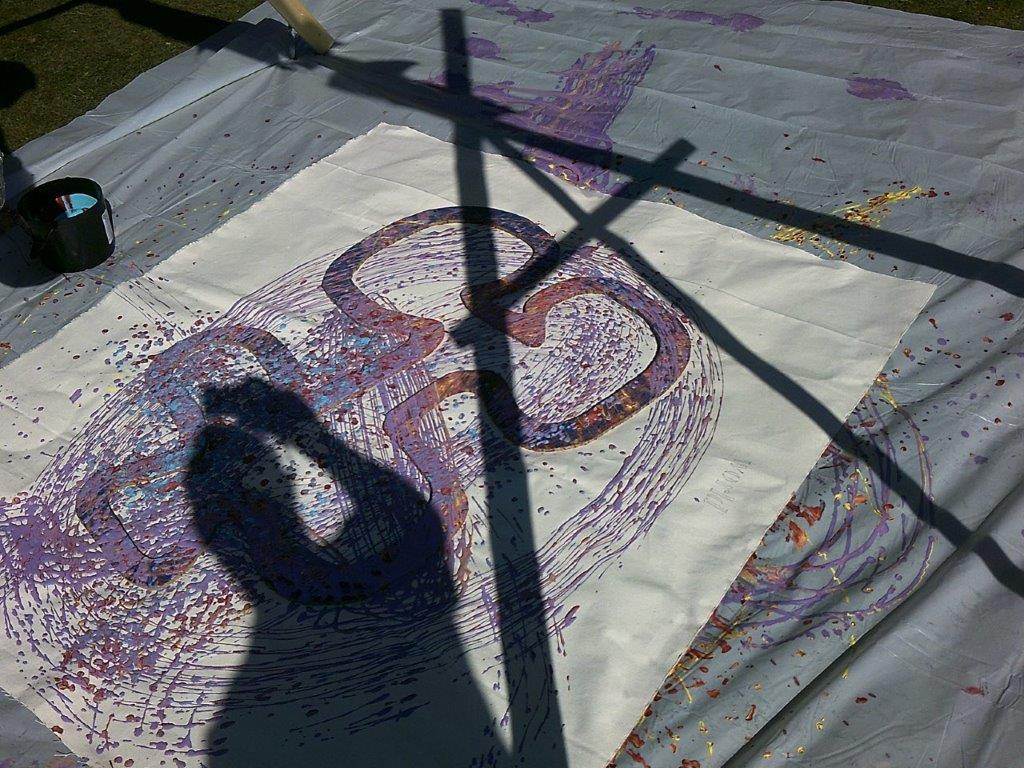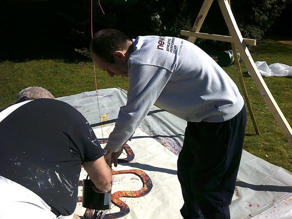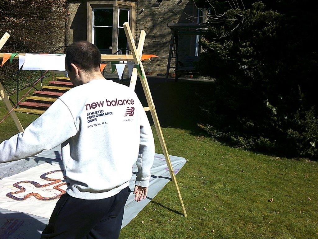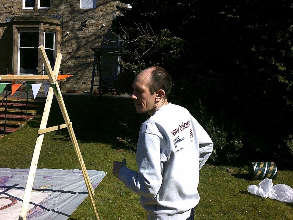 Staff and residents enjoyed the sunshine in the garden, adding their favourite colour paint into a bucket with holes in and swinging it around to form a collage to display at the home.
