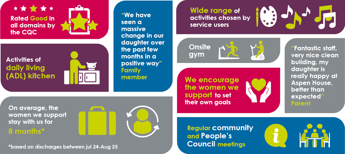 “Cygnet Aspen House has provided a safe therapeutic environment for the service user to progress and to begin to express her needs.”Care coordinator