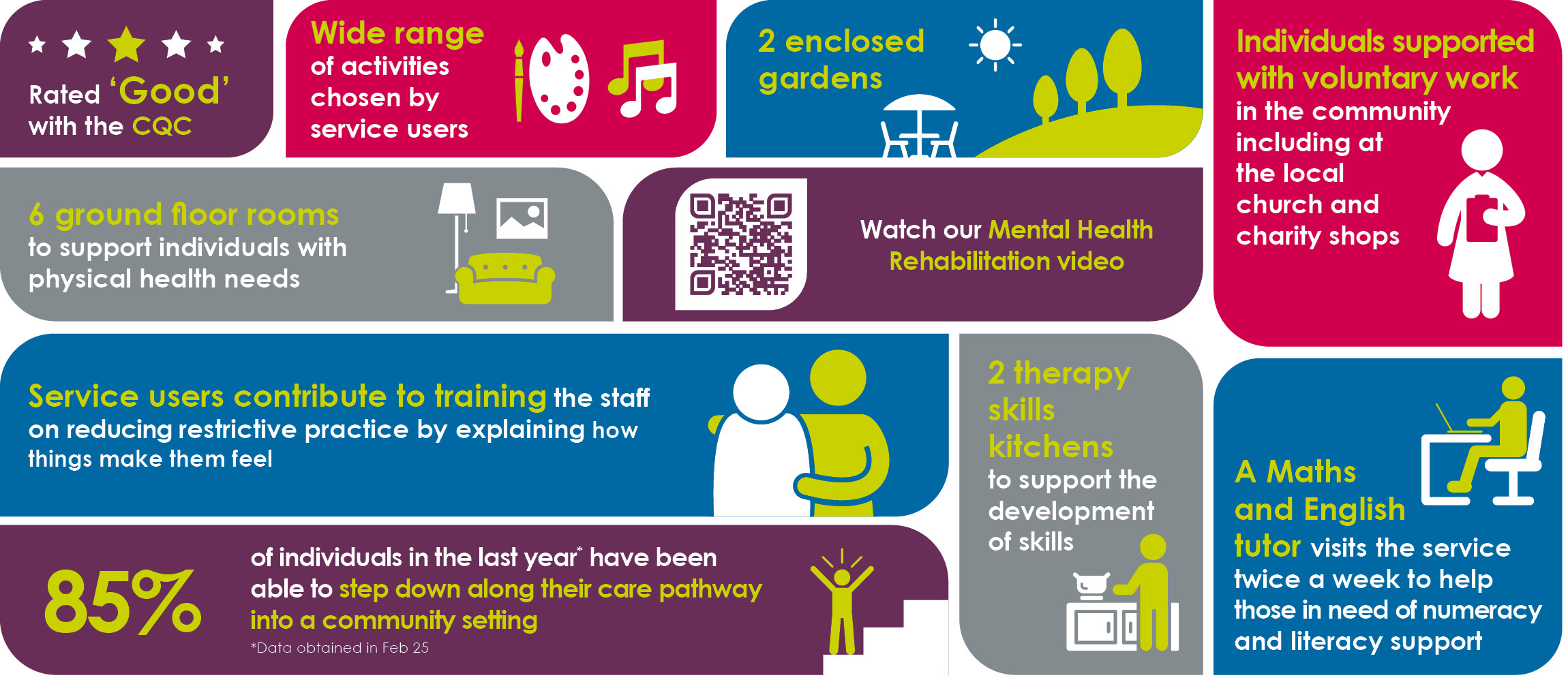 - En-suite bedrooms (6 of which are on the ground floor for individuals with physical health needs)