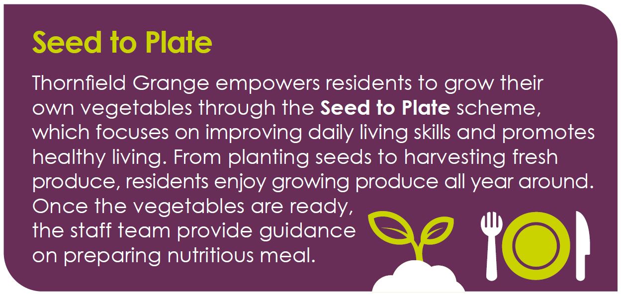Three single occupancy flats – These self-contained living areas provide the opportunity for three individuals with more challenging needs to live in their own space with staff support. Each flat has a lounge, kitchen / diner and en-suite bedroom. These three flats are located in the grounds of Thornfield Grange and each has its own garden, whilst also having access to the service’s main gardens.