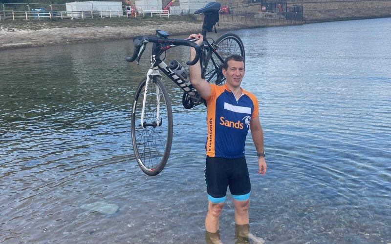 Dr Sam Parker, the North East Regional Lead of Psychology and Head of Psychology at Cygnet Appletree cycles to fundraise for Sands.