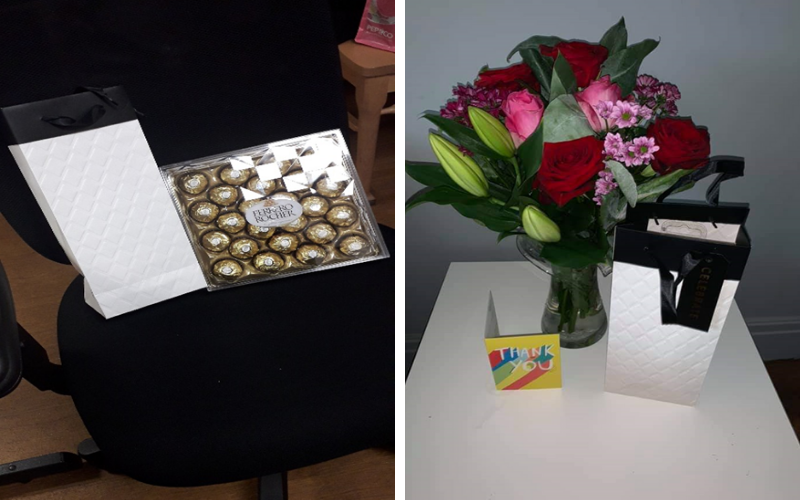 Another local hero is entrepreneur Zoe Chapman who raised £115.00 through her online business in order to help the Cygnet Fountains team with face and hand creams. Zoe was also sent some thank you gifts in return from a grateful staff team.