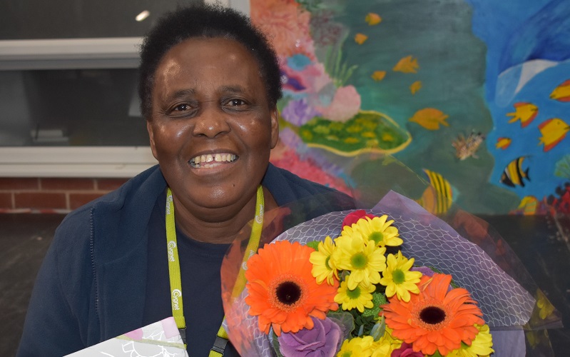 Last but not least housekeeper Margaret Mutumbirwa was presented with a lovely bunch of flowers to say a big thank you for keeping the college environment clean and for her positive, friendly and happy approach to both staff and students.