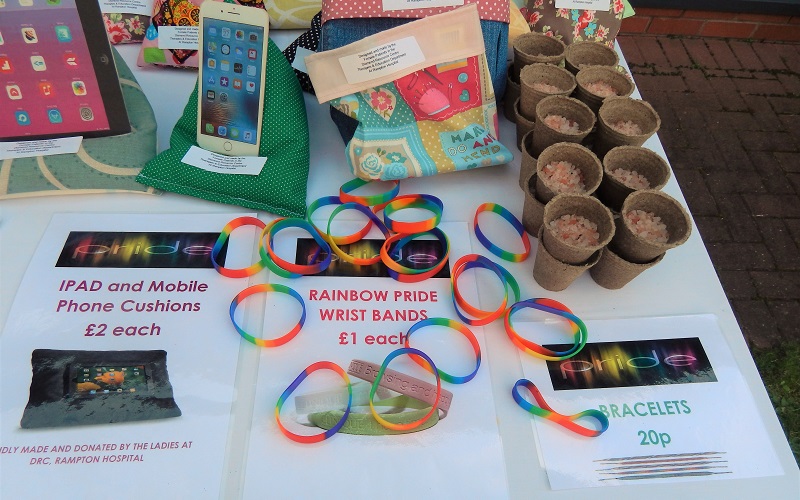 A series of stalls featured items such as wristbands and mobile phone cushions, the latter having been made especially for the day by service users from Rampton Hospital. Money raised from the stalls and a raffle draw was donated to Derbyshire LGBT+. In total £115 were raised for the charity.