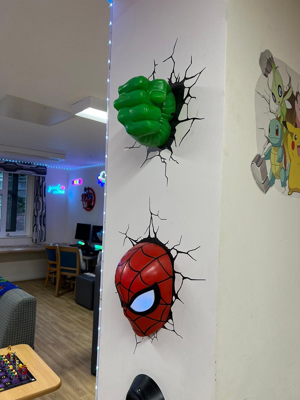 Raf Hamaizia, Cygnet’s Expert by Experience Lead, explains: “In our efforts to co-produce the built environment, we met with service users from all wards at the Peoples Council a few weeks ago. We formed a wish list together of everything they wanted to incorporate into the new social hub, including a 100 inch TV, lots of cool sensory lights, games console and bean bags, and we got them all!