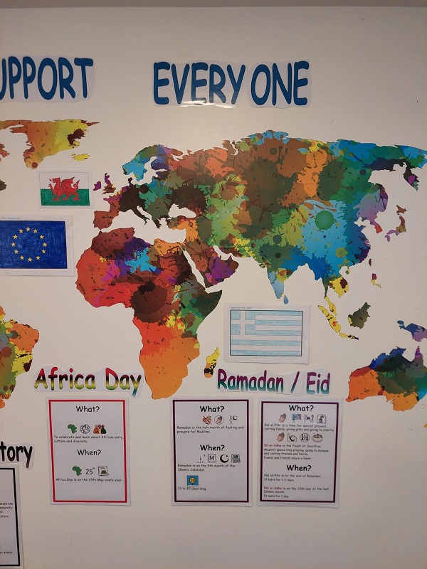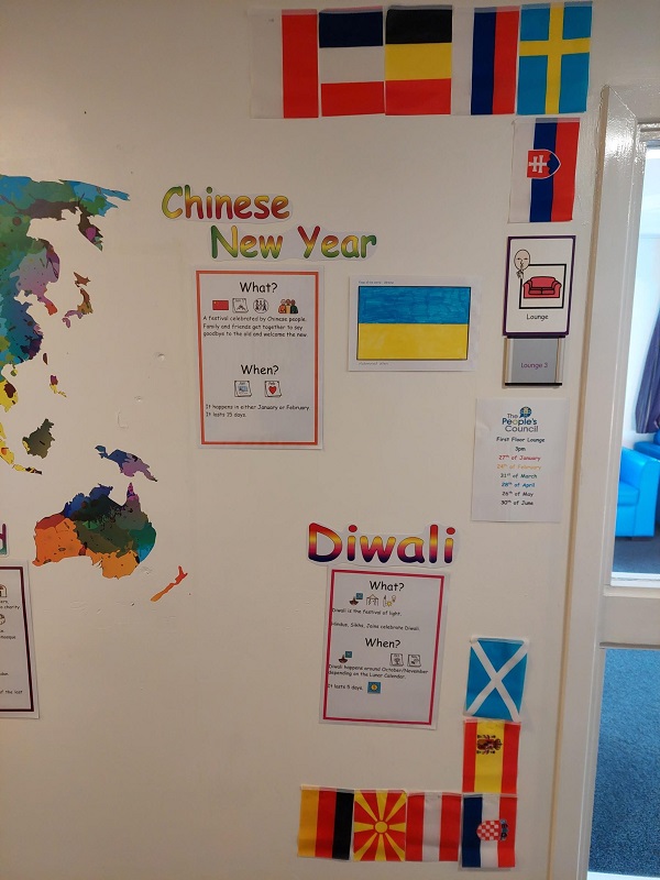 Myself and Raluca felt it was important to provide accessible information on all key events in our service users’ and staffs’ cultures. We wanted to make the wall as bright and colourful as possible so that people were drawn to find out more about the different cultures.