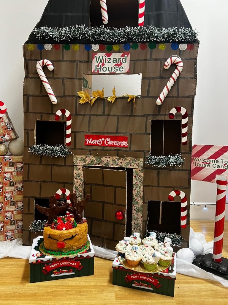 The team at Wizard House said, “The young people at Wizard House have worked really hard on a chocolate brownie Reindeer Cake and white chocolate marshmallow Snowmen Cupcakes. In the background are some of the young people’s decorations too.