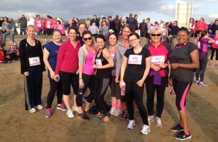 The staff and service users met before the race to have a team warm-up with the other groups running the race, dressed themselves in bright pink ribbon and prepared themselves for the 5 kilometre race. They split into three groups: runners, joggers and walkers and got ready at the start line. All participants finished the race, and have raised a total of £705 so far (and still counting…).