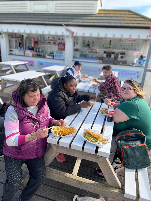 To make space for Anna to work on the mural, staff and service users took a group trip to the seaside at Ingoldmells for the day. Time was spent enjoying the beach in the sun, walking around the markets and enjoying some fish and chips.